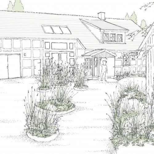 Ein kleines Projekt ist die Gartengestaltung für eines der bald mietbaren Ferienhäuser des Betriebs. Es liegt wunderschön im Wald bei Gartow auf einer Lichtung. Der Vorentwurf entstand in enger Abstimmung mit Fried und Cara an zwei Tagen vor Ort und wurde dann von uns im Nachgang im Büro weiterentwickelt.